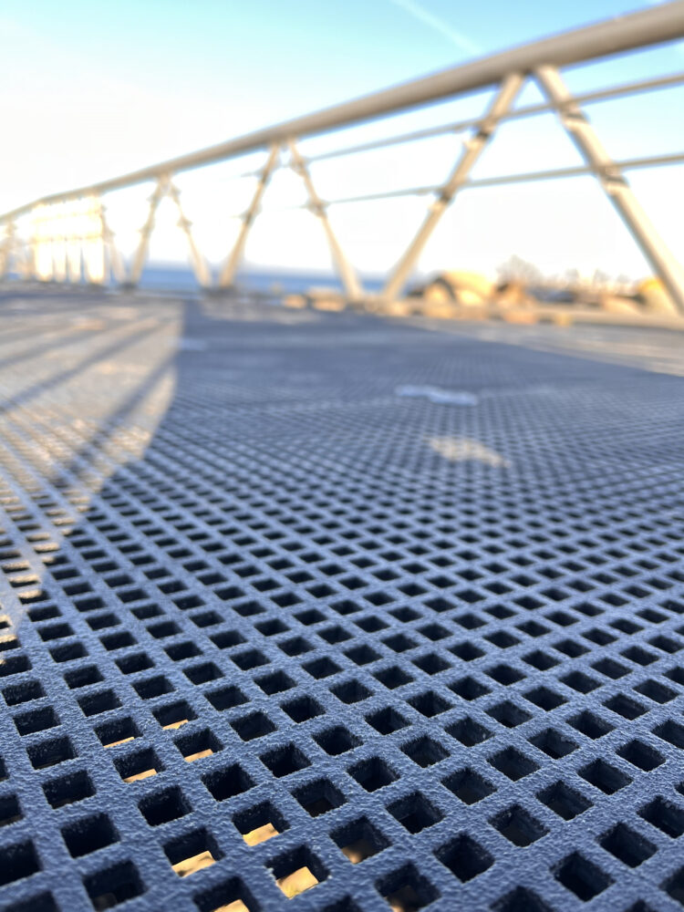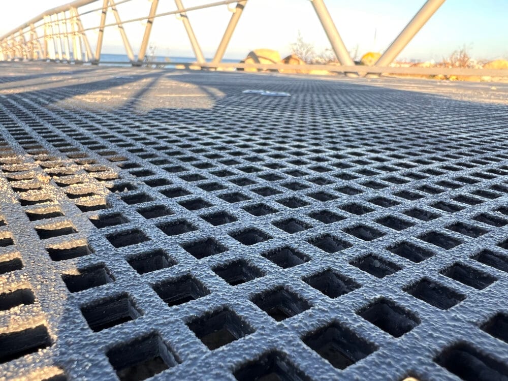 Fiberglass is a material that combines the best of both worlds. Where wood risks rotting and steel is attacked by rust, fiberglass can withstand salt spray, sun and constant stress. It’s as safe under bare feet on a hot summer day as it is under wheelchair wheels on a windy fall day. And because it’s both lightweight and strong, it’s easy to install, while still being able to bear heavy loads year after year.