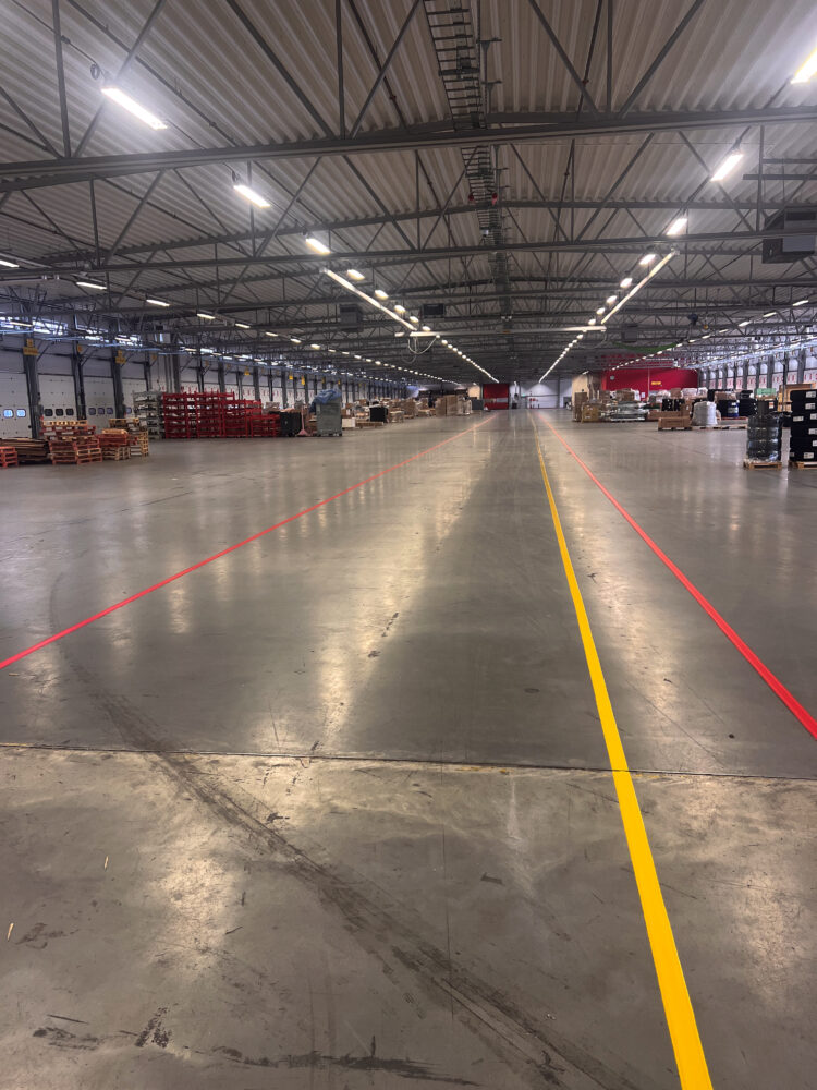 Line painting is a durable and much longer-lasting alternative to floor marking tape. Once the paint has hardened, there is no need for rolled-up edges or maintenance work, which is perhaps precisely why we are receiving more and more requests for line painting – at more and more of DHL’s facilities around Sweden.