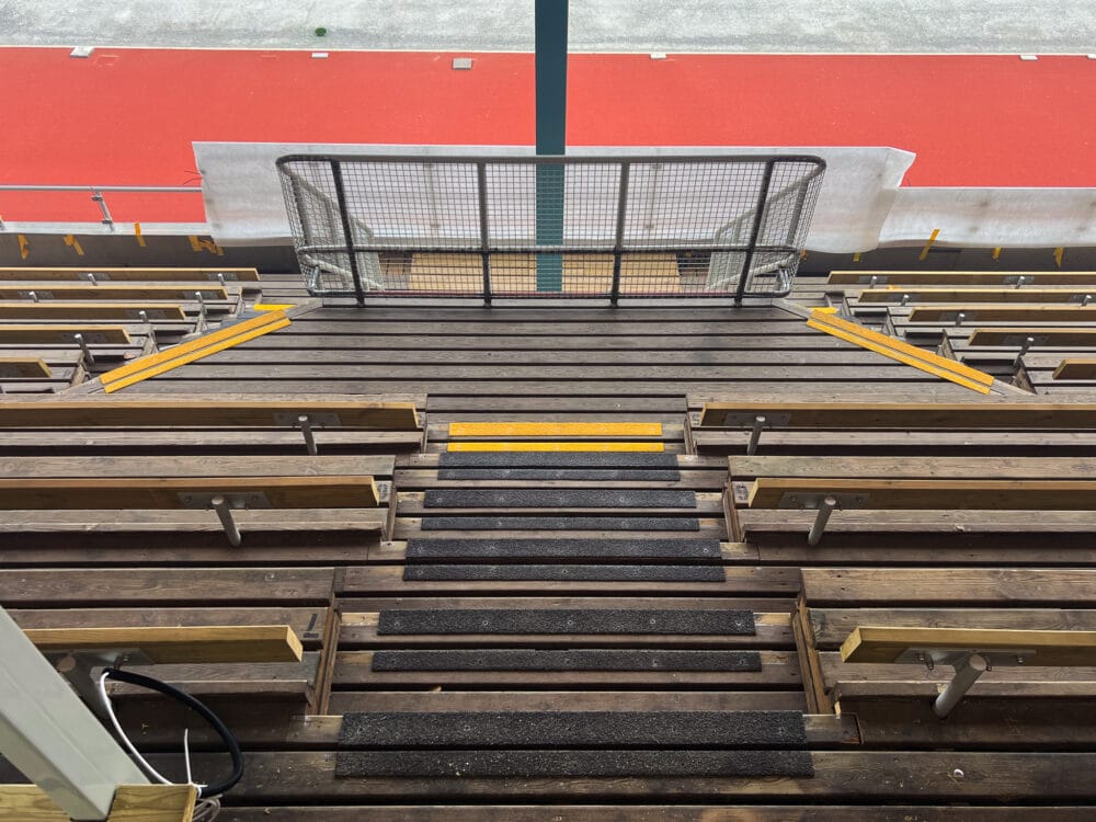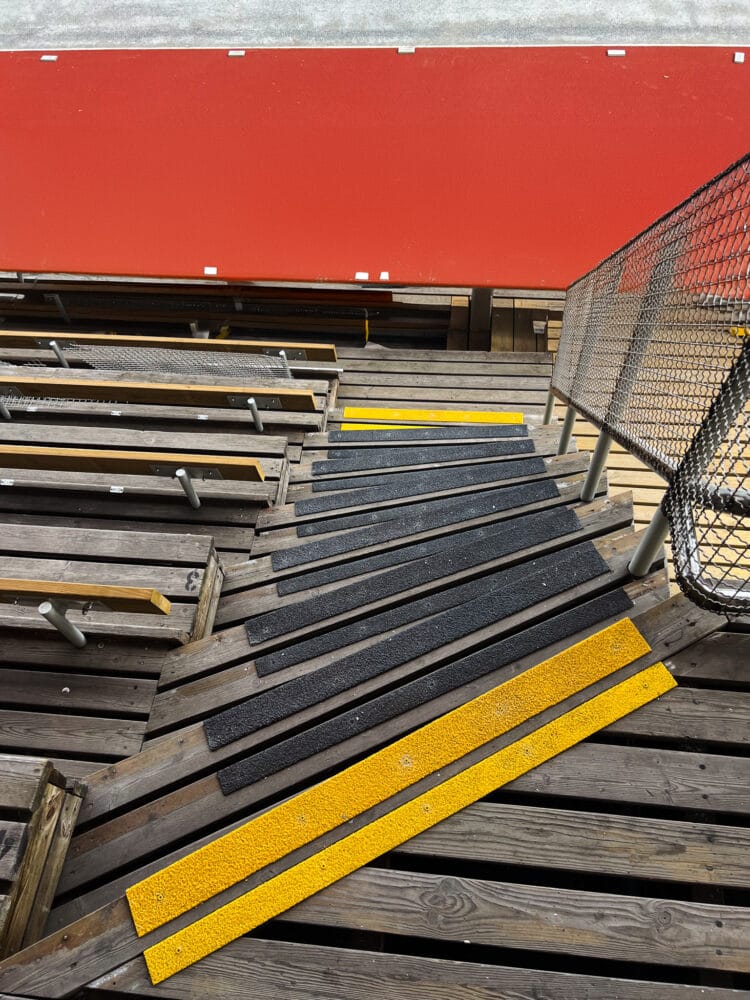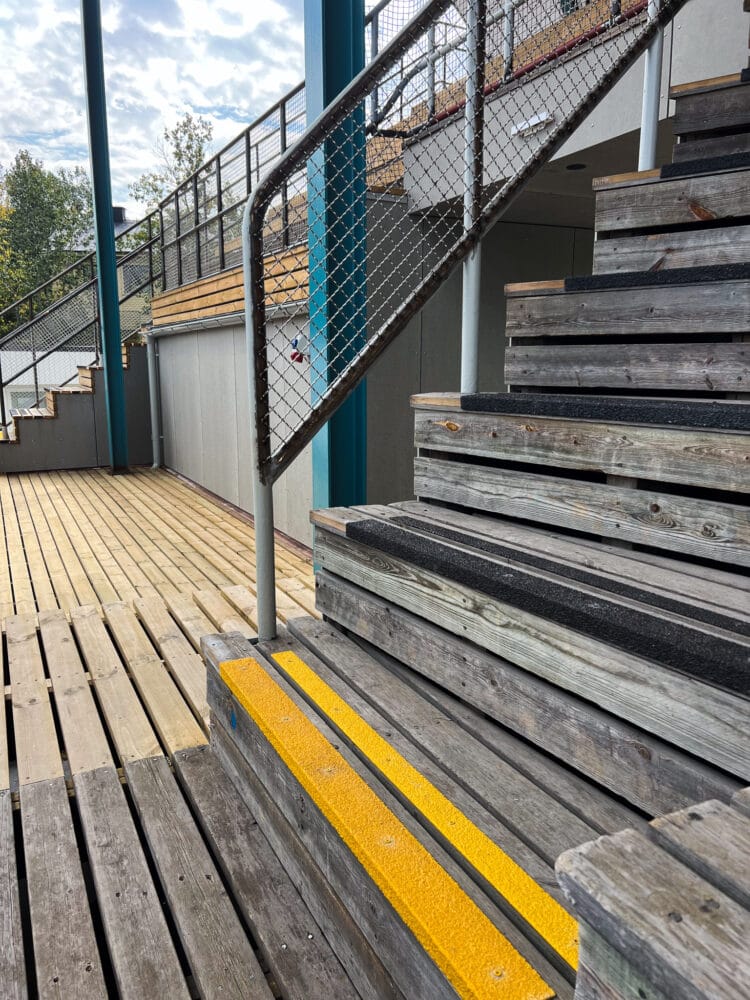 It is Winge, through the City of Stockholm and the real estate office, that is responsible for the renovation. It is Winge, together with other partners and suppliers, who are responsible for restoring Krillan to its former glory. It is also Winge, through their site manager, who had the MIMER stair nosing strip and IDUN anti-slip strip installed – fiberglass stair nosings and anti-slip strips – instead of going ahead with the original plan to have aluminum strips at the top of the steps. Nothing wrong with aluminum, that’s not what we mean. It’s just that outdoors, under the open sky with snow, rain, ice and all that entails, aluminum is not the best solution.