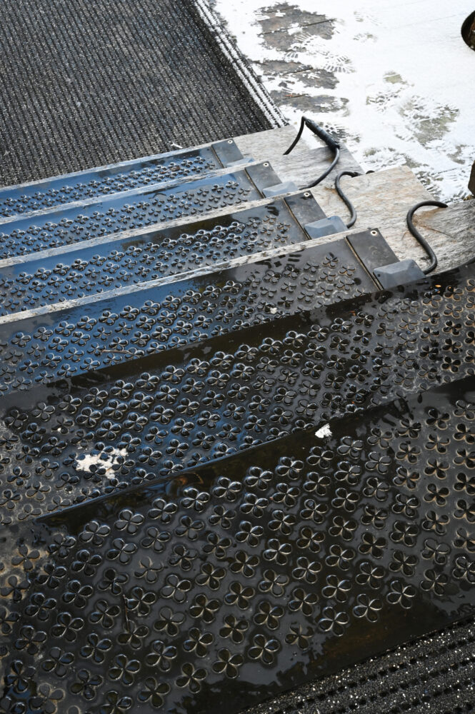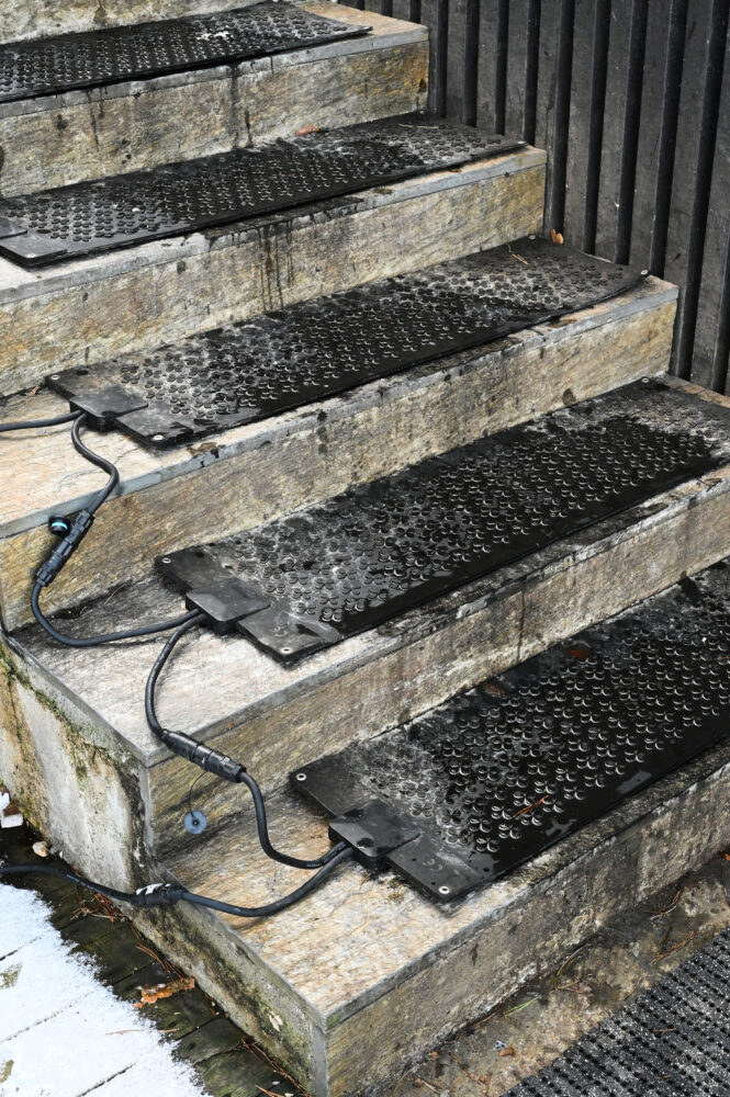 Before winter really hit, Yasuragi ordered about twenty heating mats from us at Safestep, which they installed neatly and damn neatly around the outdoor spa area. On the stairs are series-connected step mats in size 27x95cm, and on the walkways to, from and around the pools are heating mats in size 60x100cm as a warm and comfortable runner on the cold stone. On the larger mats, they have also installed a soft rubber mat that removes all the seams and cords – a solution that we will definitely take inspiration from.