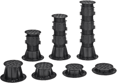 Adjustable plastic feet for the construction of walkways, platforms, podiums and technical spaces. Quick and precise height adjustment – up to 845 mm.