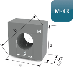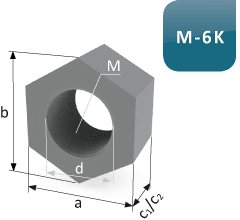 As standard, we supply square nuts in square design c = M (nut thickness = thread diameter). We also supply hexagon nuts and c = 2 x M designs.
