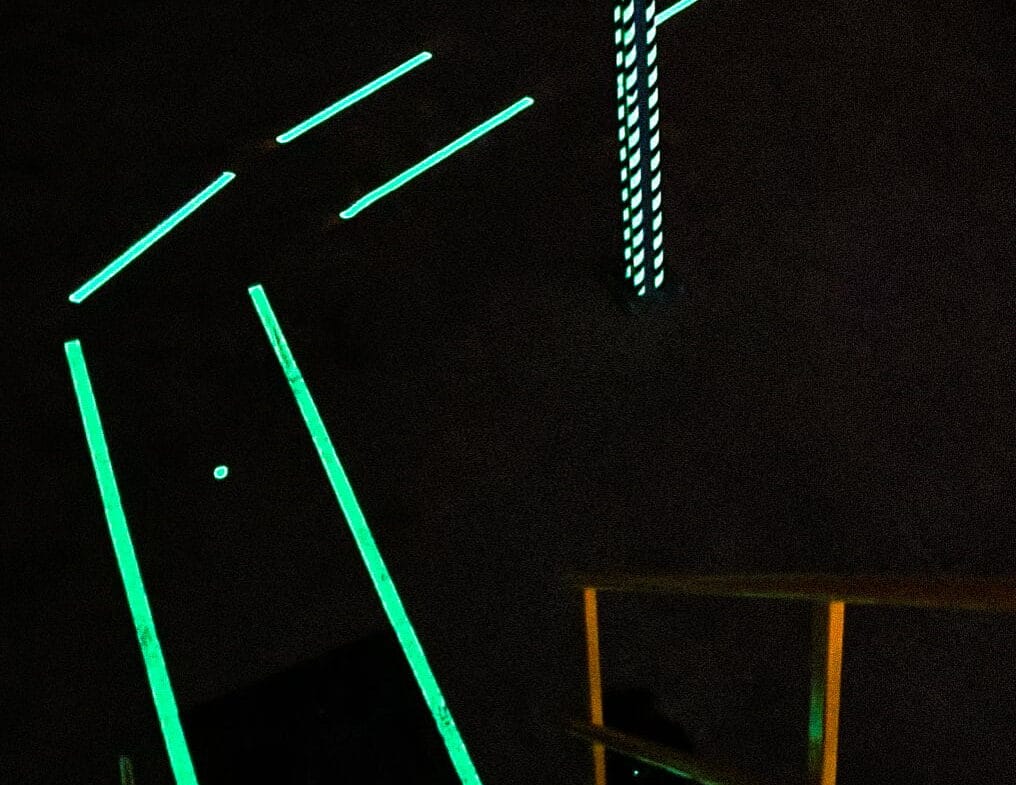 The photoluminescent anti-slip strips are painted with a photoluminescent, solvent-free 2K epoxy resin system and have a very durable surface that is suitable for tough working environments. The paint has a short recharge time and the photoluminescent effect lasts up to 35 hours.