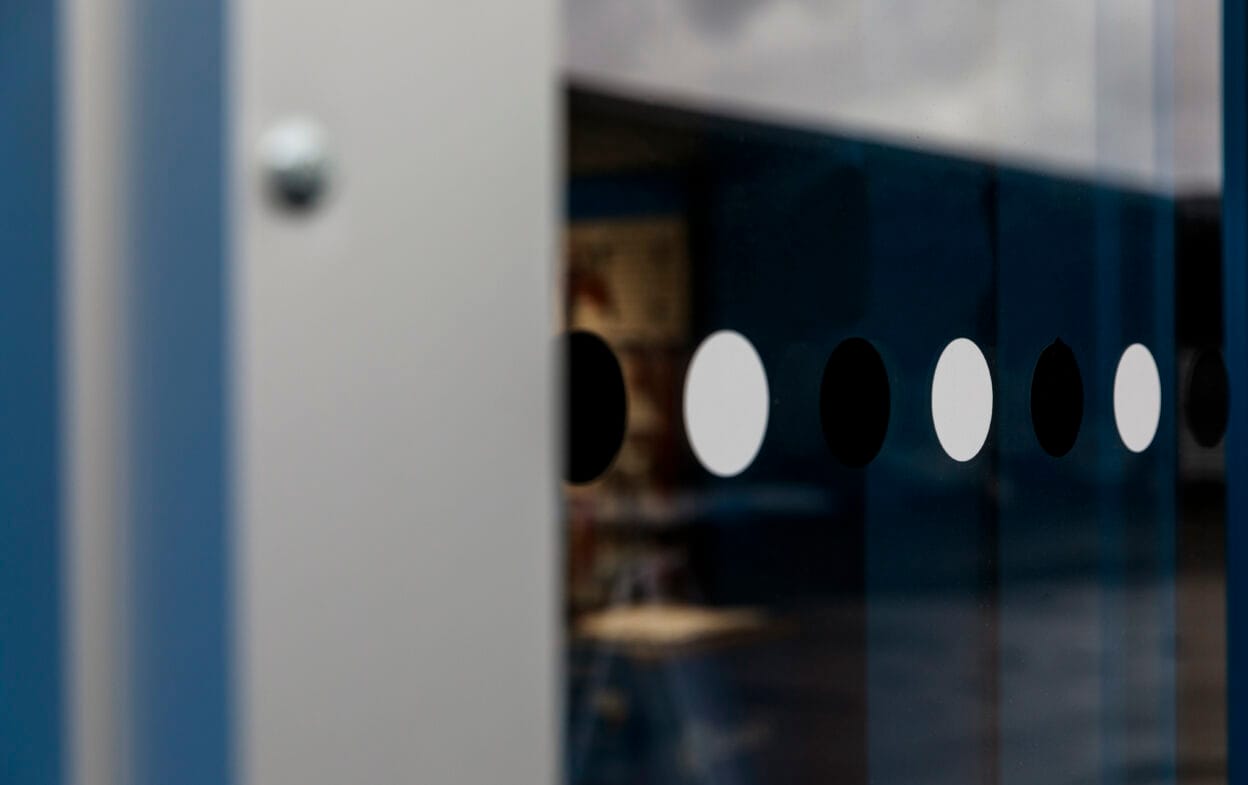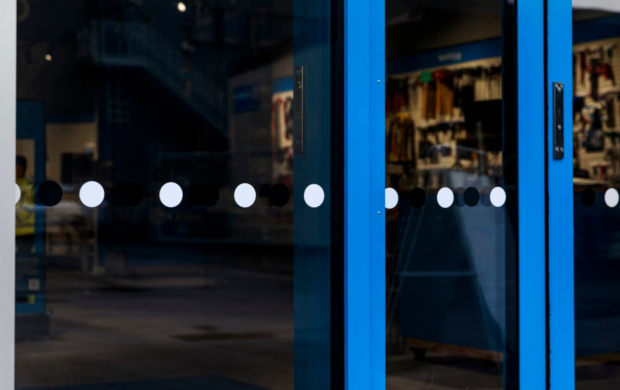 Important to remember: According to the Swedish National Board of Housing, Building and Planning’s recommendations, large glass surfaces in doors and glass surfaces that can be confused with doors or openings must be clearly marked with contrast markings in a different material and color. The markings should be visible to both standing and seated persons by being placed at two different heights of 90 cm and 150 cm from the ground. Read more about design and placement recommendations here – or download our guide below under Documents.