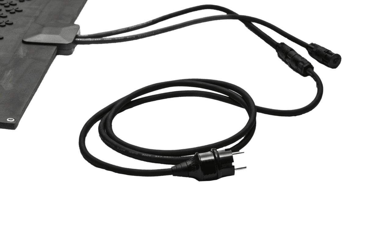 Each set of heating mats requires a power cable to connect the system to a grounded wall outlet. The power cable connects the system to a 230V socket.