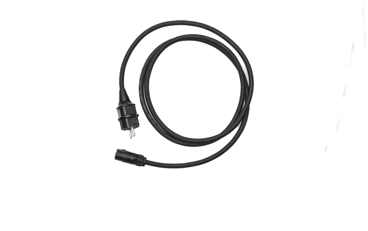 The power cable is waterproof and is intended to be left outside throughout the winter season. Protection class IP 68. Length: 2 m.