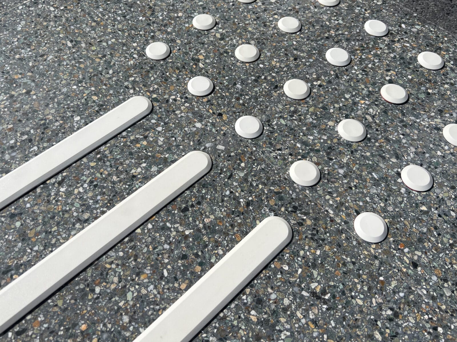 The tactile beacons should also be installed with different materials and a brightness contrast of at least 0.4 NCS – either lighter or darker than the surroundings. Read more about all the rules and recommendations for tactile beacons here – or download our guide below under Documents.