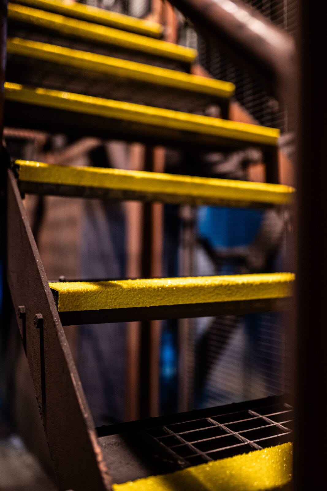 Durable stair nosing profiles with non-slip surface – for stairs in industrial environments.