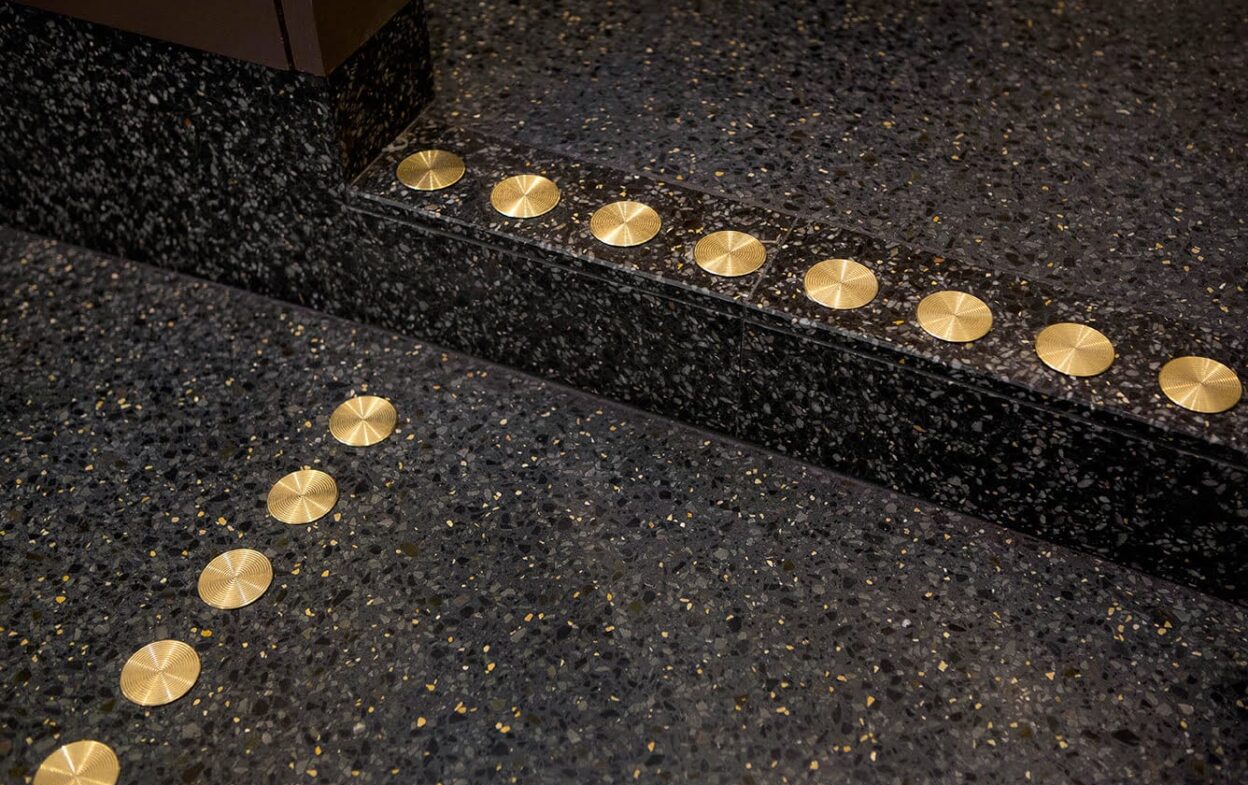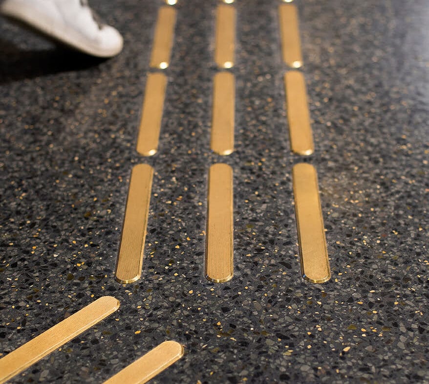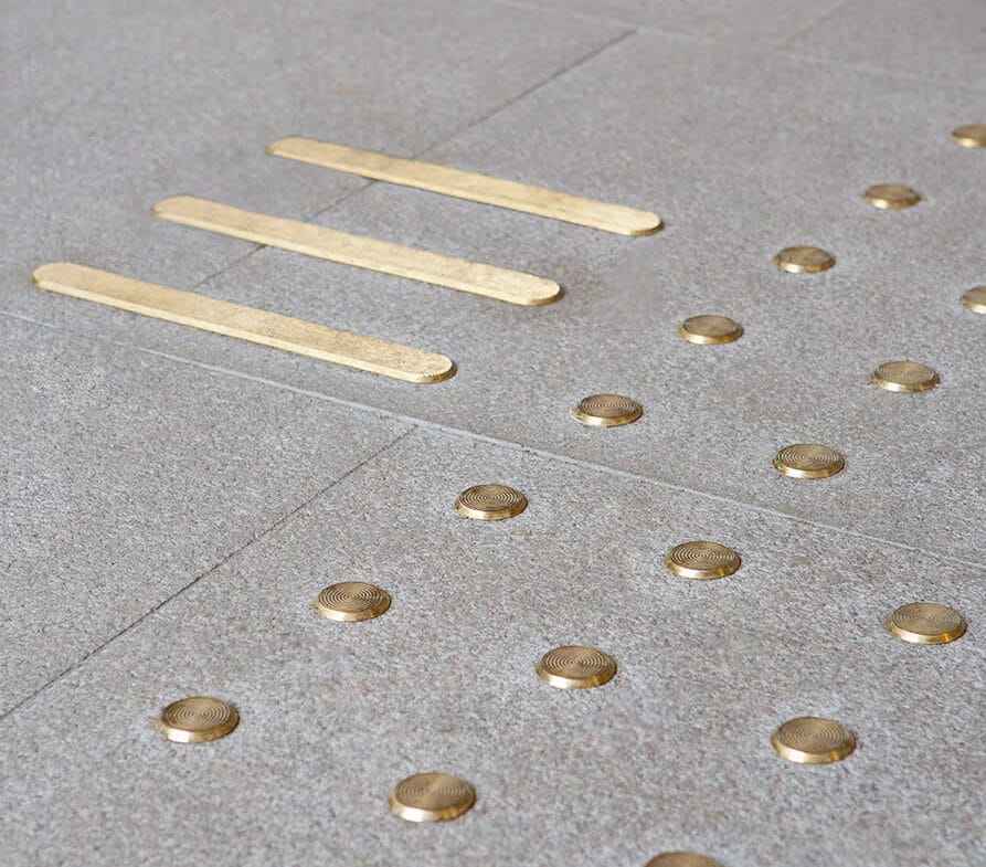 Safestep LUTHAGEN is our product series entirely in Eco-Brass. The range includes tactile surface indicators, tactile studs and contrasting markings with different surfaces and fixings: pins, smooth backing, and 3M-tape . Can be installed on stone, concrete, tiled, wooden, plastic and textile floors.