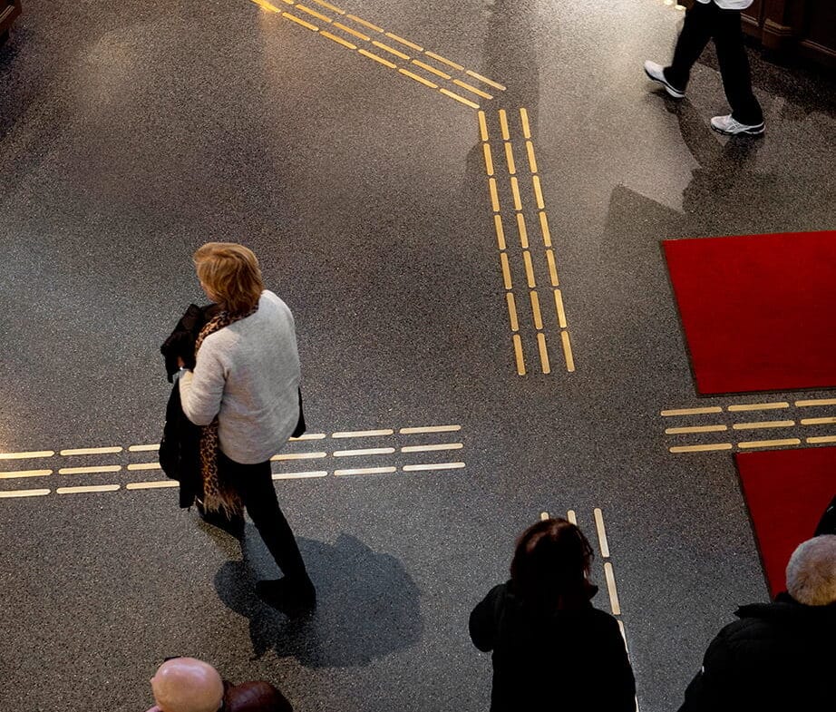 Tactile pathways are an important part of the accessibility of public buildings and premises. The pathways are both visual and tactile and lead to important destinations such as elevators, toilets, reception and stairwells.